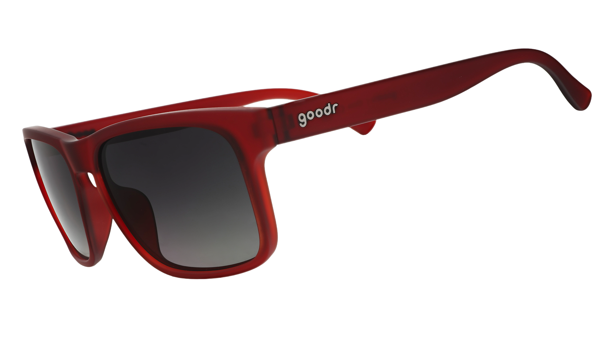 Blood Moon Barbecue sunnies light up your look with dark red Grand G frames and black gradient lenses. Whether you’ve got a big noggin or just like to live large, these shades bring heat without burning your eyes. No slip, no bounce, all confidence. Perfect for grilling under a lunar eclipse, spicing up your outfit, or casually convincing strangers you’ve mastered the art of celestial BBQ.